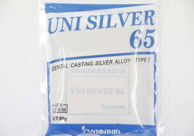 歯科鋳造用銀合金(第1種) 鋳造性・経済性を兼ね備えた銀合金。銀が65%含有され、パラジウムレス液相点は580℃の商品。 |